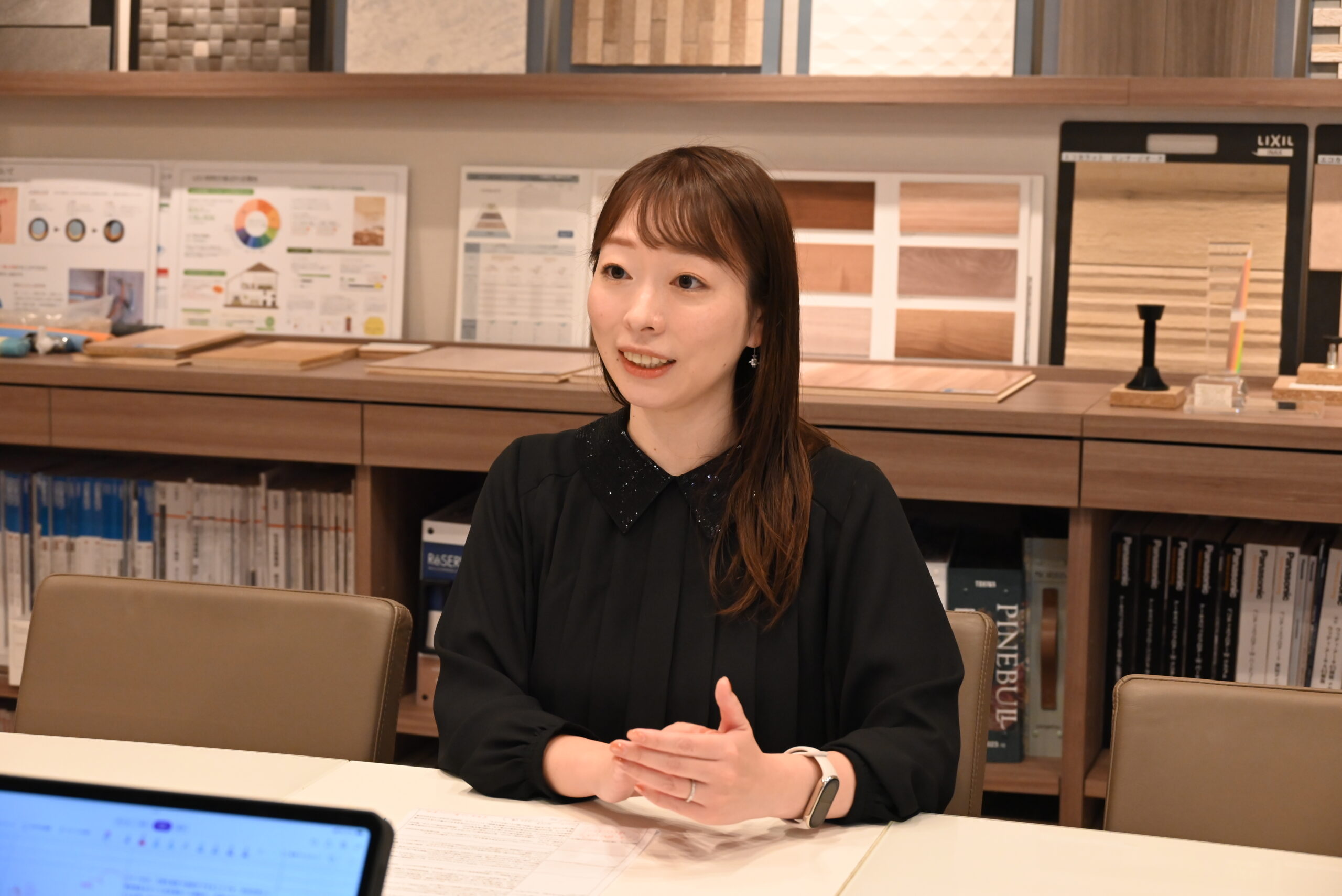 私は、施工部 施工業務課に所属しており、主にリノベーション工事の申請書類提出・マンション側規約の聞き取り・近隣住民の方へのご挨拶や問い合わせ対応、工事説明等を行っています。