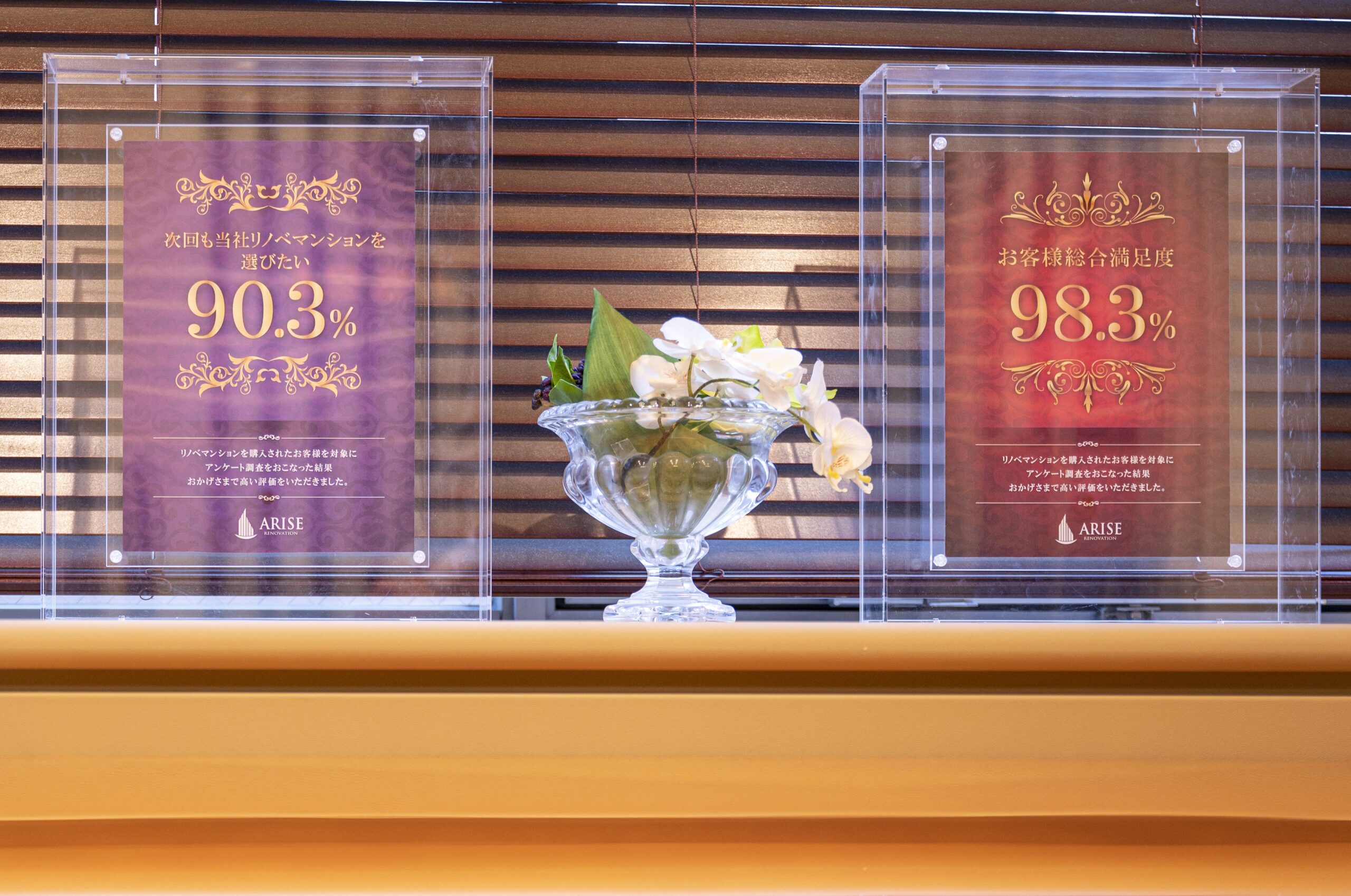 こういった活動もあり、お客様満足度調査では90%を超える高評価、更に仲介業者様からも「自信を持ってお客様にお薦めできる」という高評価を9割以上からいただいています。