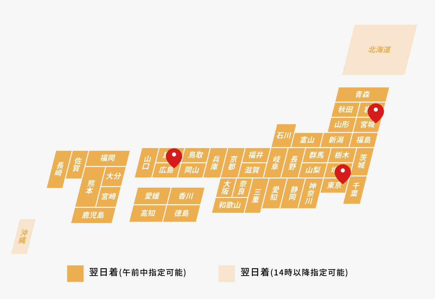 - 同一県内でも例外地域(離島等)がございますので、ヤマト運輸にお問い合わせください。