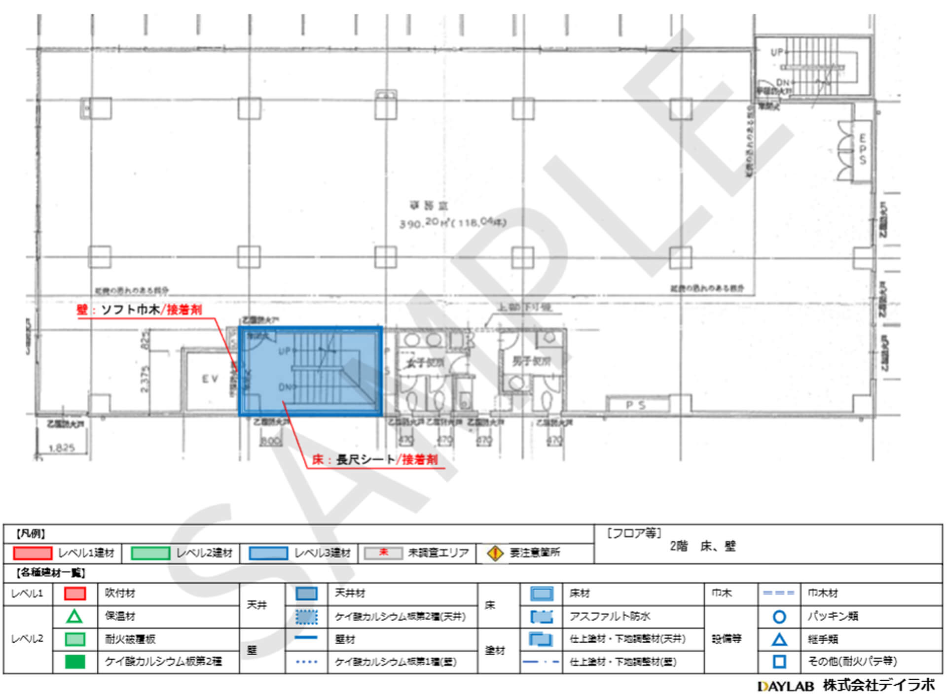 対象施設の竣工図、改修図等から石綿含有懸念建材の使用状況を確認します。