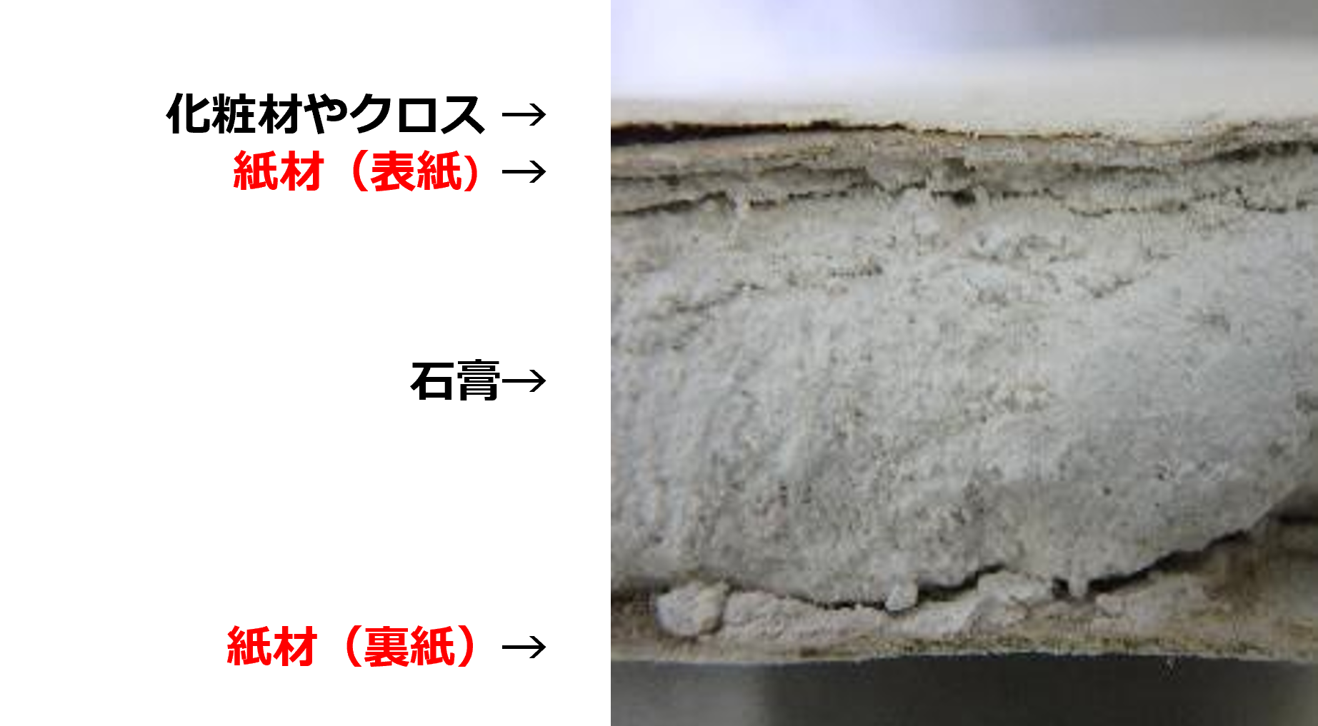 <参考画像> 石膏ボードの断面図