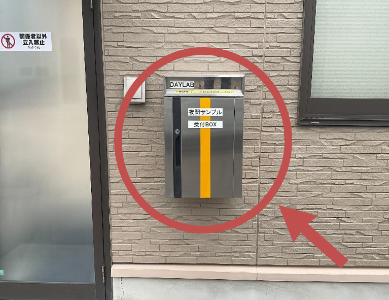 また、受付時間(8:00~17:00)外にはポストへの投函も可能です。投函時は、依頼書と試料が分かれないように、貴社名を記載した封筒等に入れる等して投函ください、