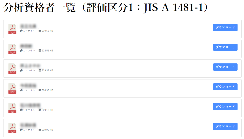 また、2023年10月よりアスベストに関する法律が施工され、分析調査においても資格者による実施が必須となりました。これに伴い、アスベスト分析を行った資格者の合格認定証をダウンロード出来るリンクも案内させていただいております。これにより、お客様がご依頼した分析が資格者によって行われたことの証明を手軽かつ迅速に行うことが可能です。